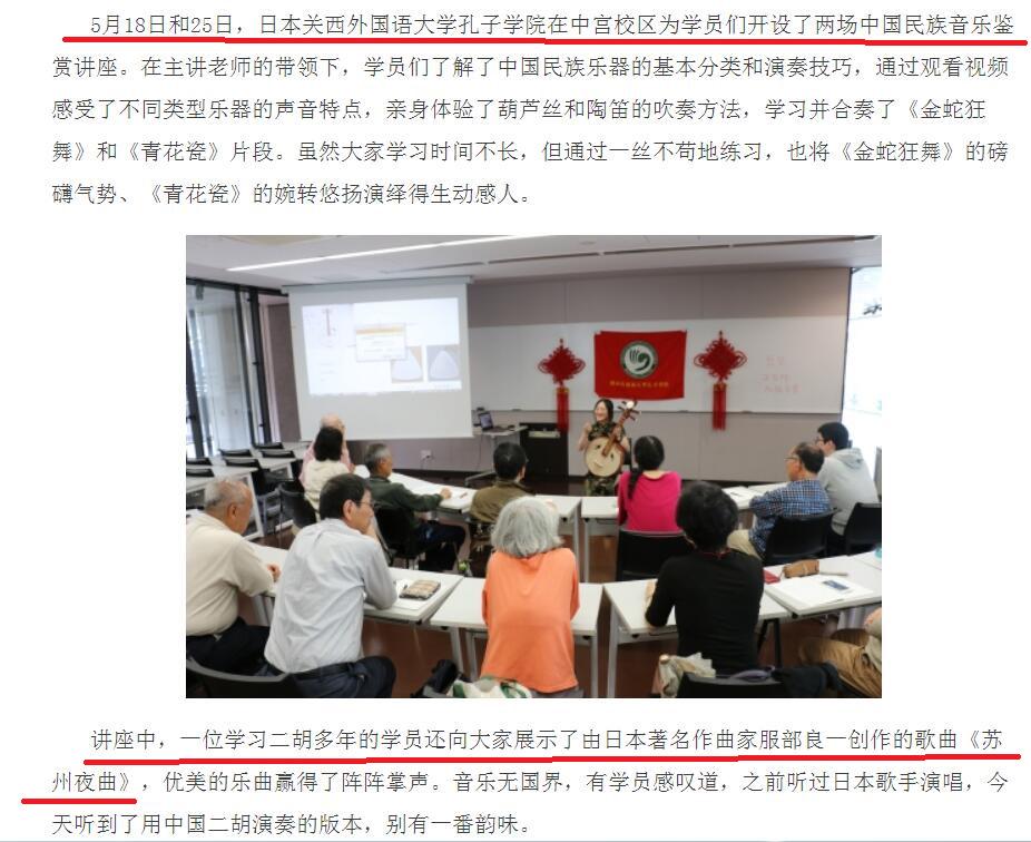 至于霍尊支持者抬出来的孔子学院,经过检索发现,那家孔子学院隶属于日本关西外国语大学,当天用二胡演奏《苏州夜曲》的学员也是一个日本人。