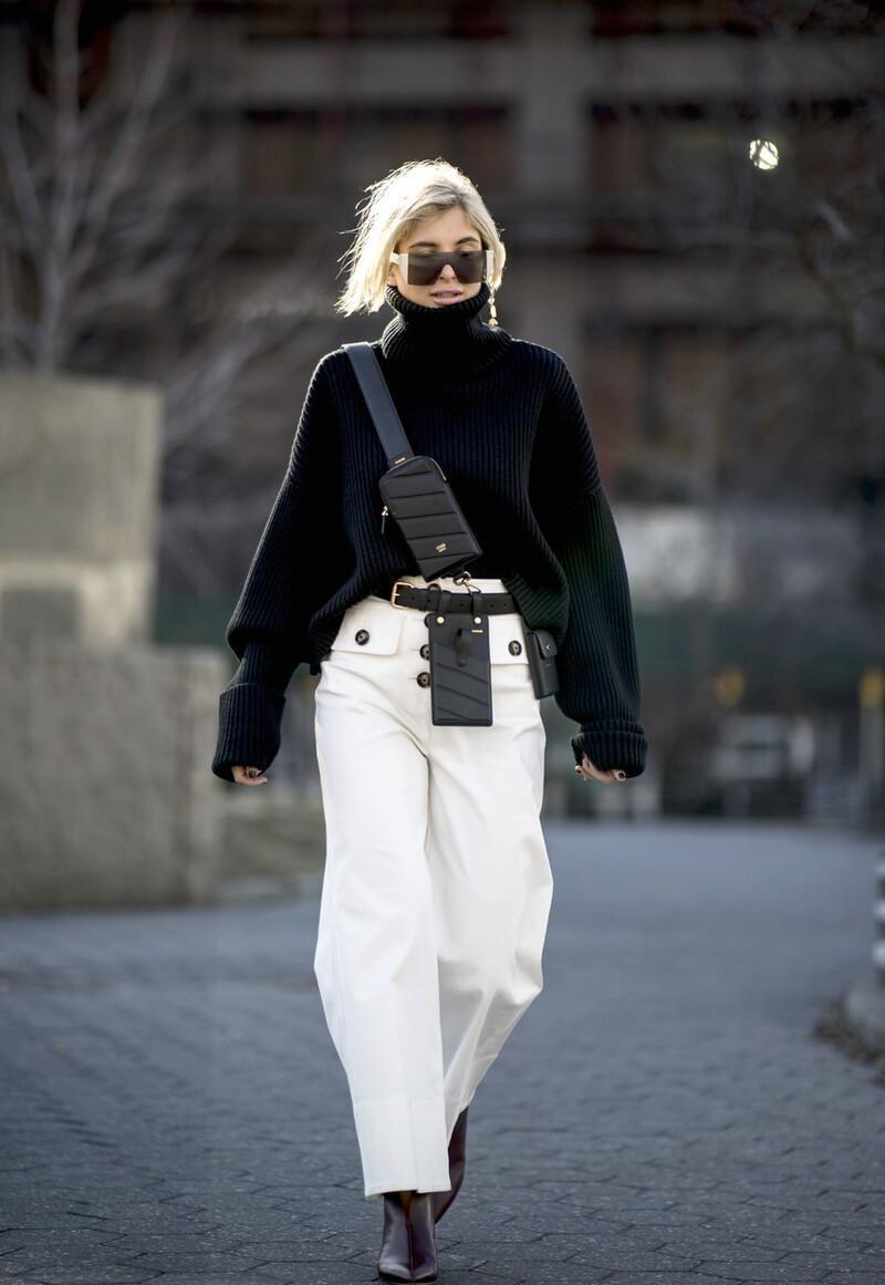 用腰包来与针织衫和半身裙进行搭配,不仅能够展现出很强的时尚感,还能够解放双手,更加方便了。