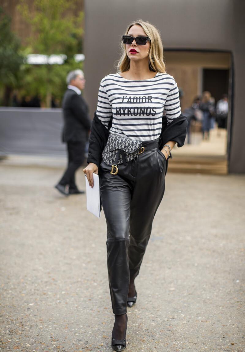所以想要让这个造型更加时髦,就可以用腰包来进行搭配,腰包的搭配丰富了造型的层次感,看上去也是很帅气的。