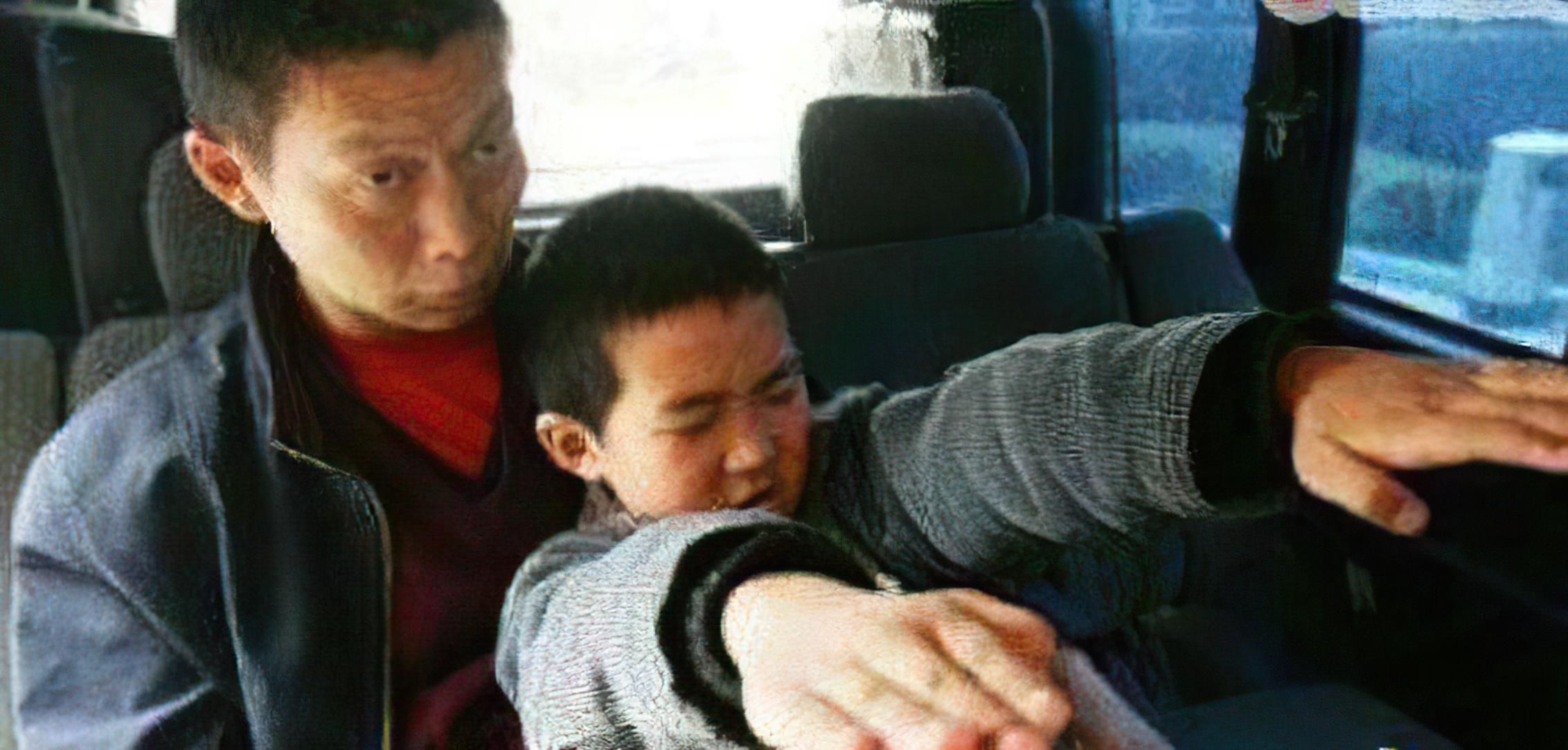 当时摄影师坐在车子的副驾驶上,舒小中和舒翱坐在后排,