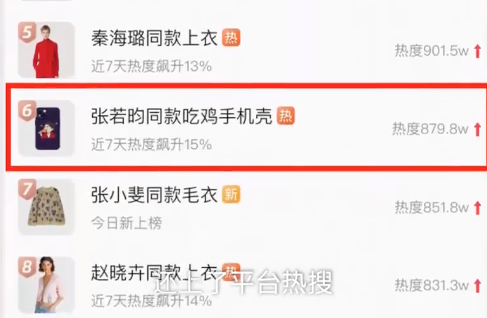 有淘宝店长表示,张若昀春晚现场吃鸡的画面很有意思,就连夜赶工,做了这款手机壳,没想到一下子火了,还上了淘宝热榜。
