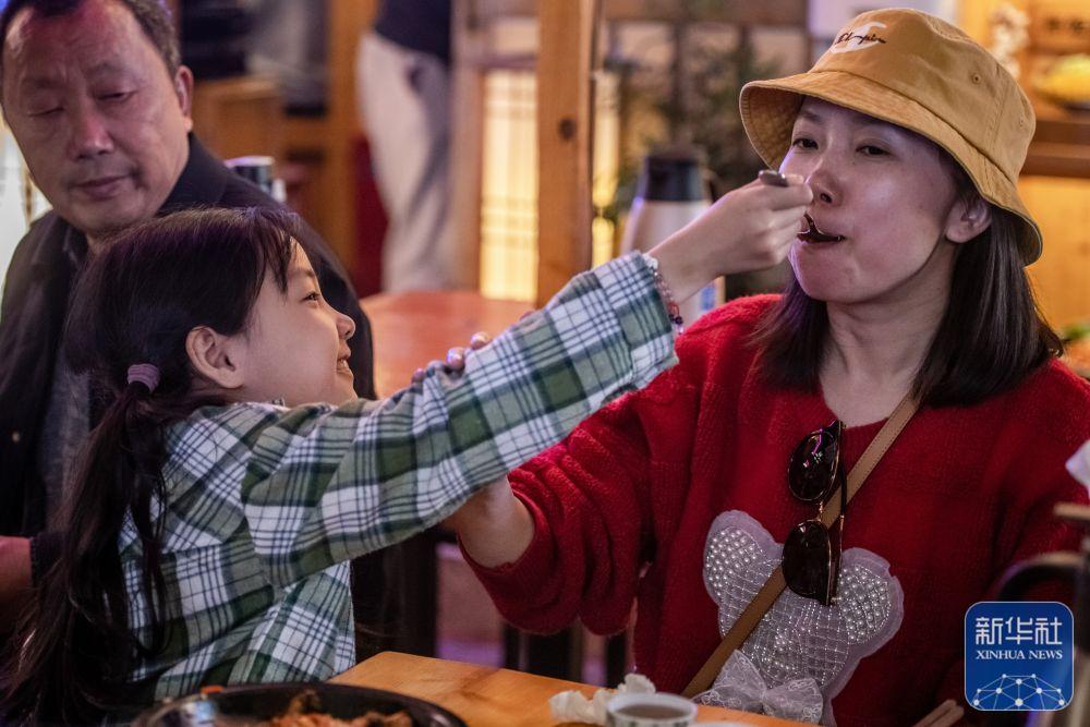 1月24日,市民在贵州省安顺市西秀区一家餐厅享用美食。新华社发(陈熙摄)